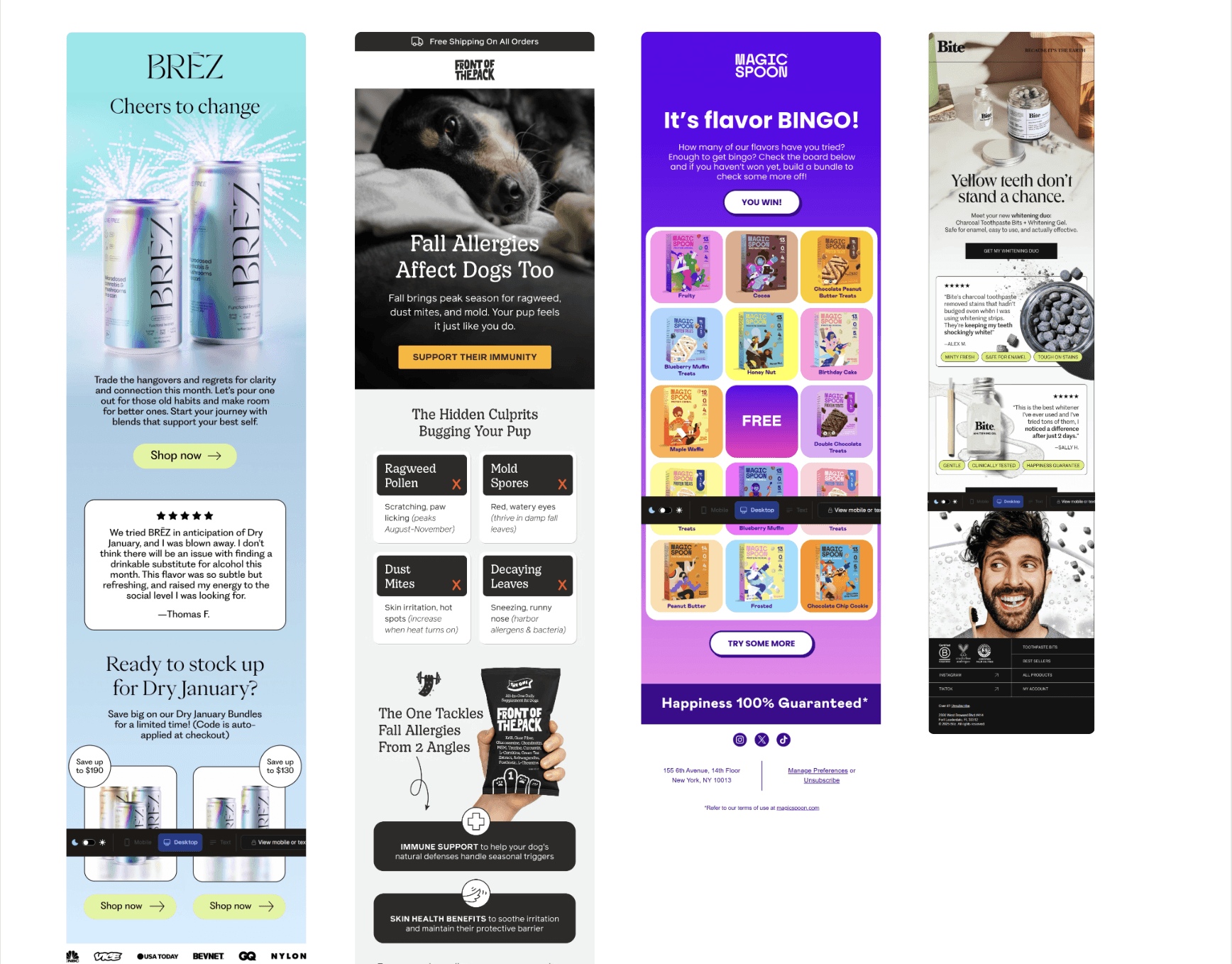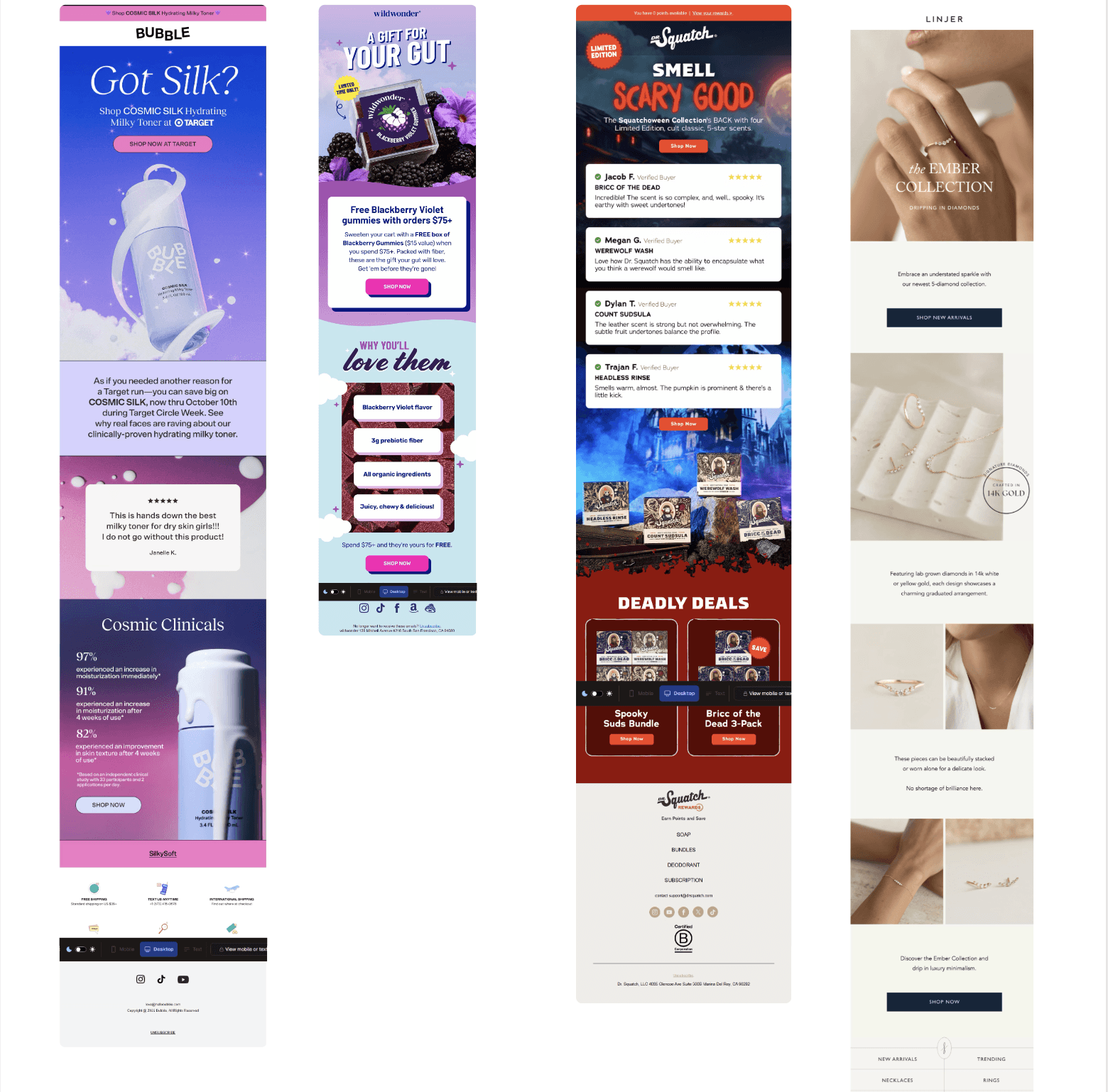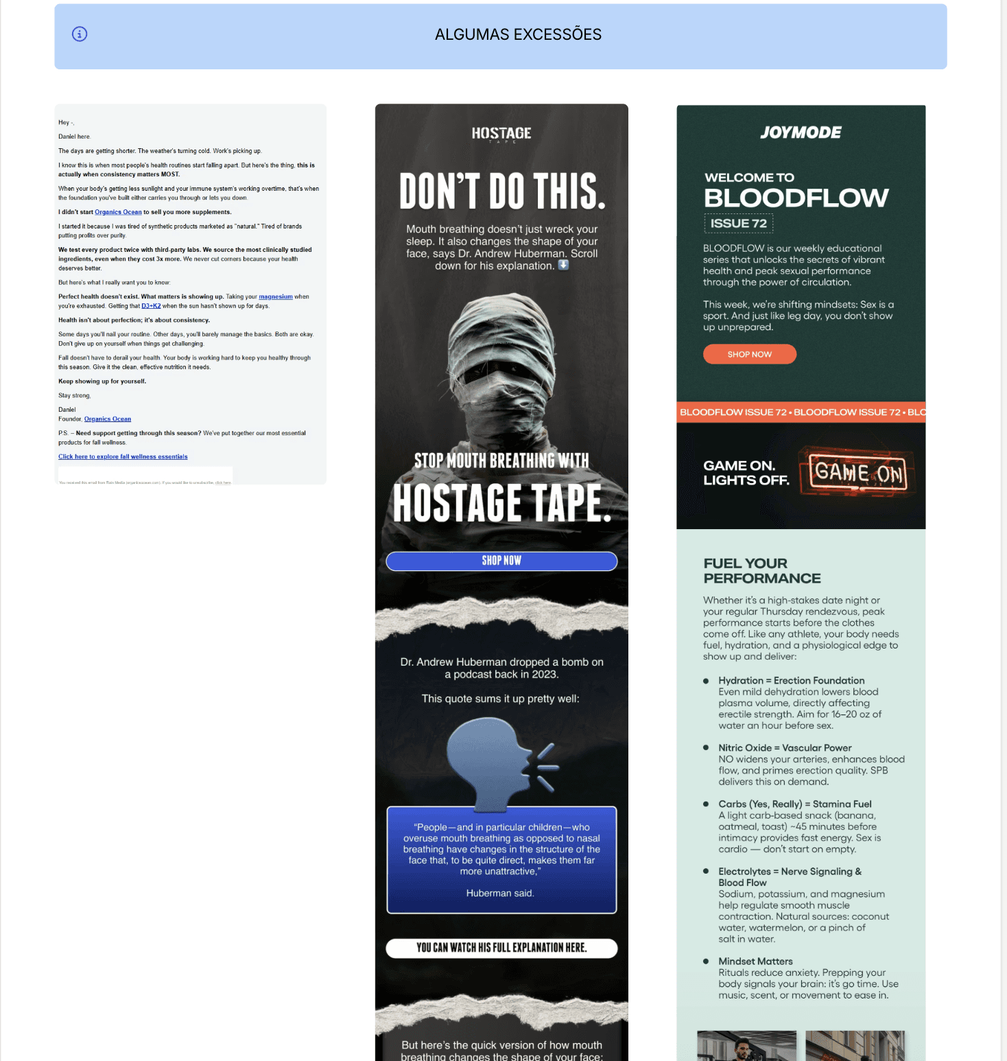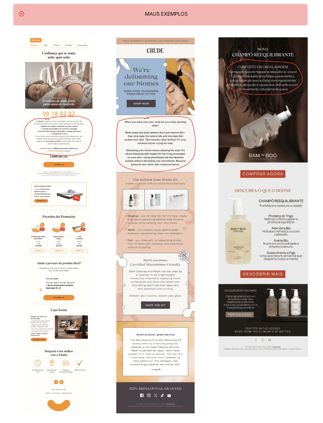 Cada secção do e-mail é como uma ponte narrativa. Se não há transição: