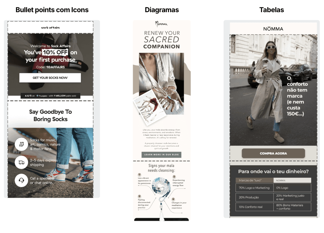 Nota: Isto não se aplica a emails puramente de texto. Aplica-se a emails de design com imagens.