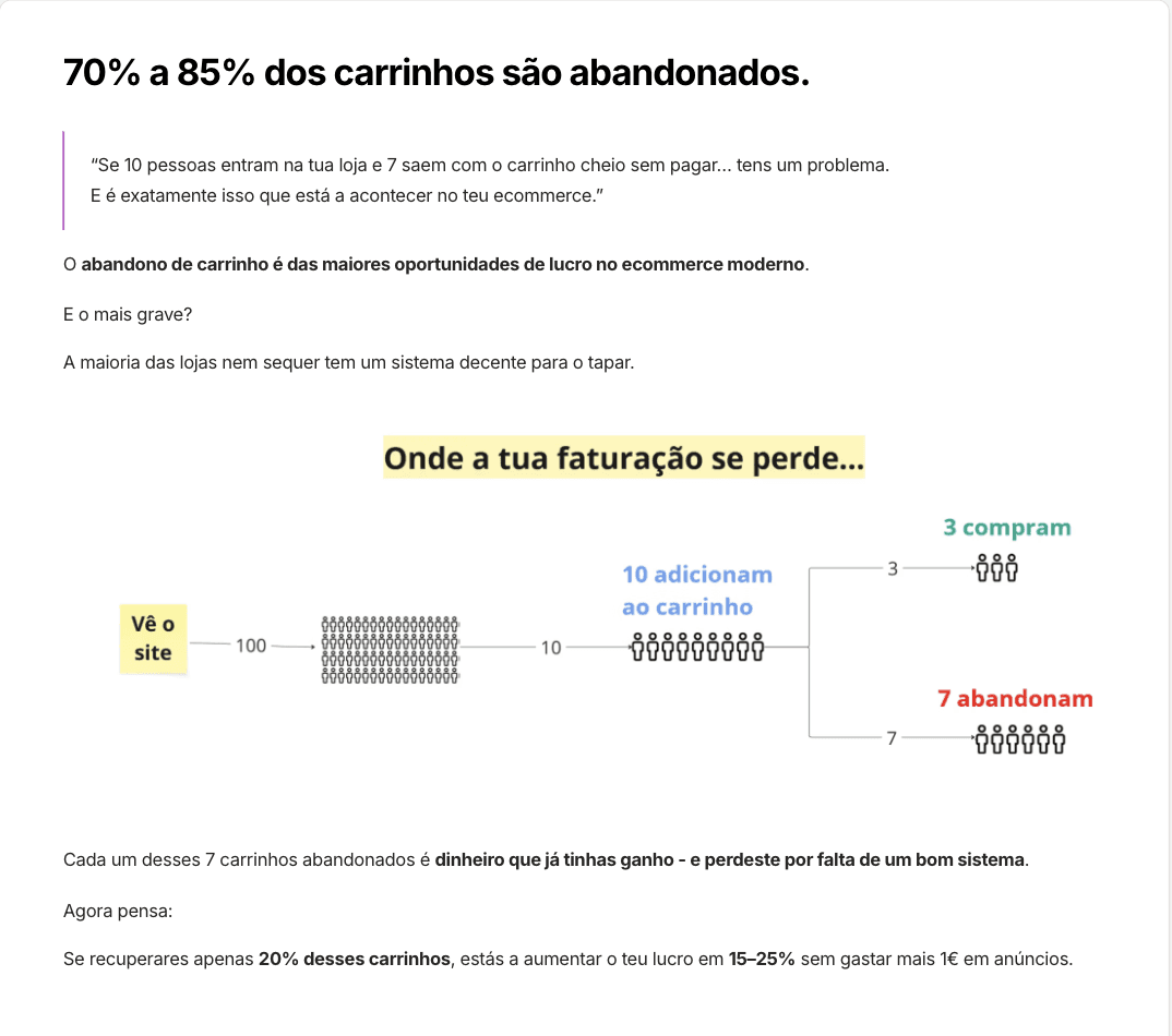 Recupera 250%+ Carrinhos & Checkout Abandonados e parar de deixar dinheiro em cima da mesa